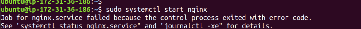 nignx 를 작동시키려고 start 명령어를 입력했는데 에러 발생