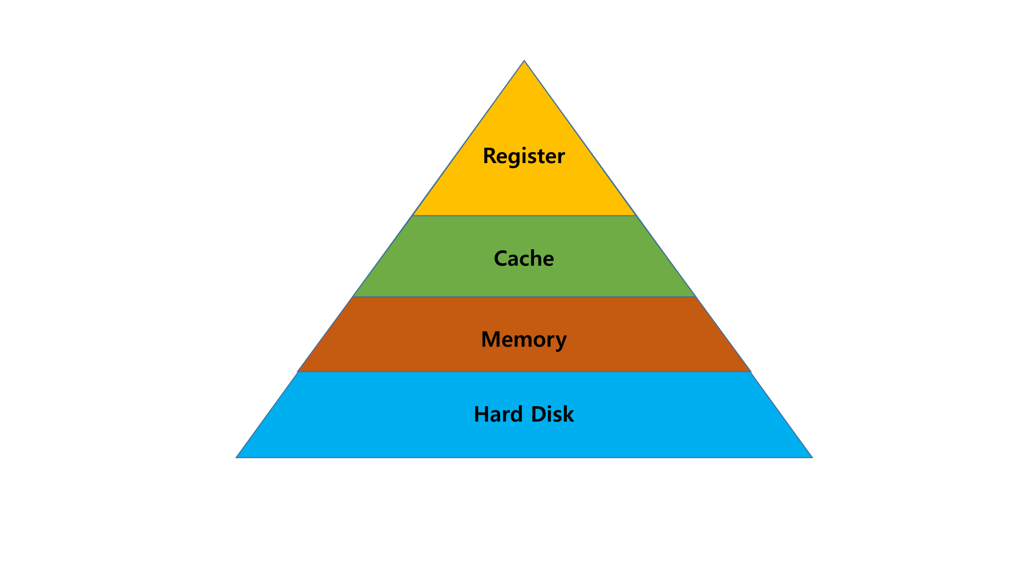 - 상층에서 하층으로 갈수록 메모리 크기가 커집니다.